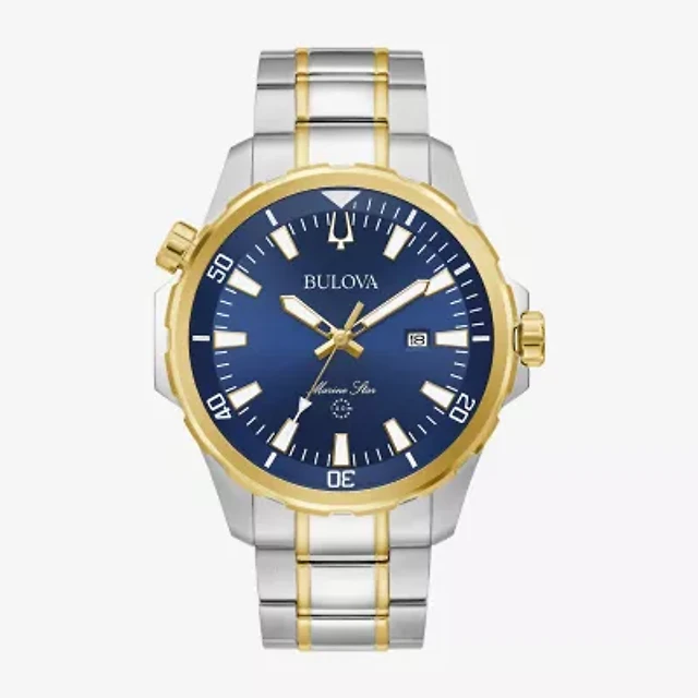 Bulova Marine Star Mens Diamond Accent Two Tone Stainless Steel Bracelet Watch 98d175