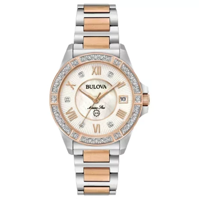 Bulova Marine Star Womens Diamond Accent Two Tone Bracelet Watch 98r234