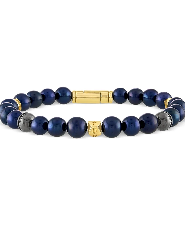 Bulova Men's Marine Star Blue Freshwater Pearl (8mm) & Diamond (1/5 ct. t.w.) Beaded Bracelet in 14k Gold-Plated Sterling Silver
