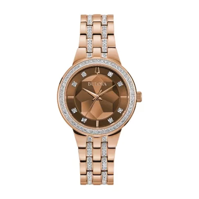 Bulova Phantom Womens Crystal Accent Rose Goldtone Stainless Steel Bracelet Watch 98l266