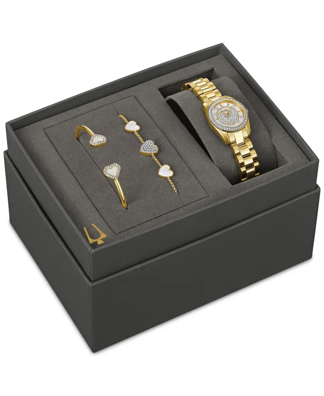 Bulova Women's Crystal Gold-Tone Stainless Steel Bracelet Watch 29mm Gift Set