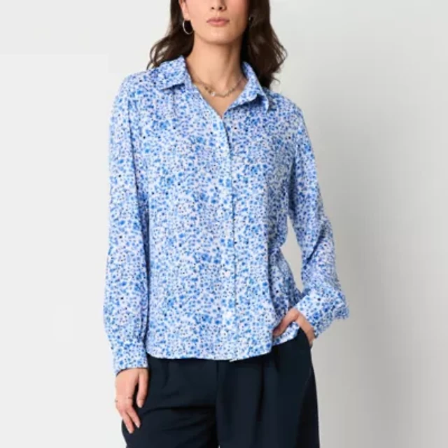 by&by Womens Long Sleeve Drop Shoulder Regular Fit Juniors Button-Down Shirt