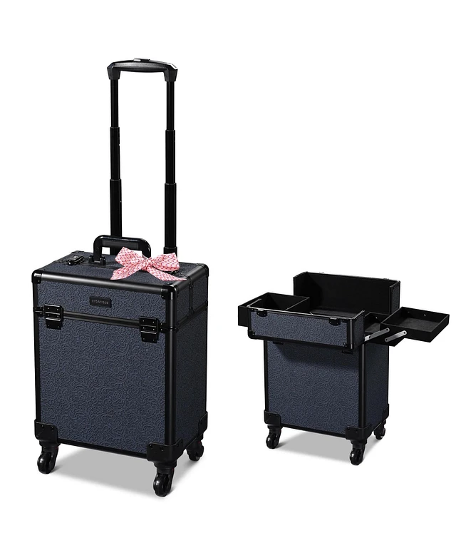 Byootique Rolling Makeup Train Case Cosmetic Trolley Organizer Mermaid Black