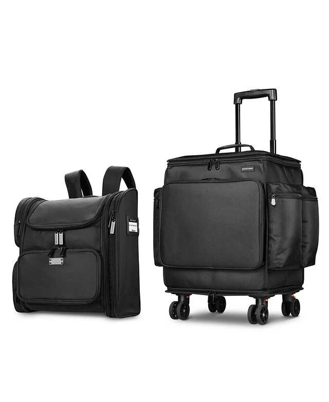 Byootique Rolling Makeup Train Case w/ Backpack Travel Barber Cosmetic Pink