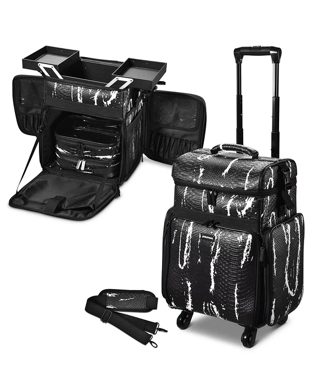 Byootique Soft Sided Rolling Makeup Train Case Cosmetic Organizer Crocodile Makeup Case Trolley Makeup Artist Nail Technician