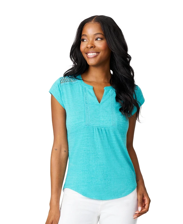 Cable & Gauge Women's Lace Shoulder Short Sleeve Top