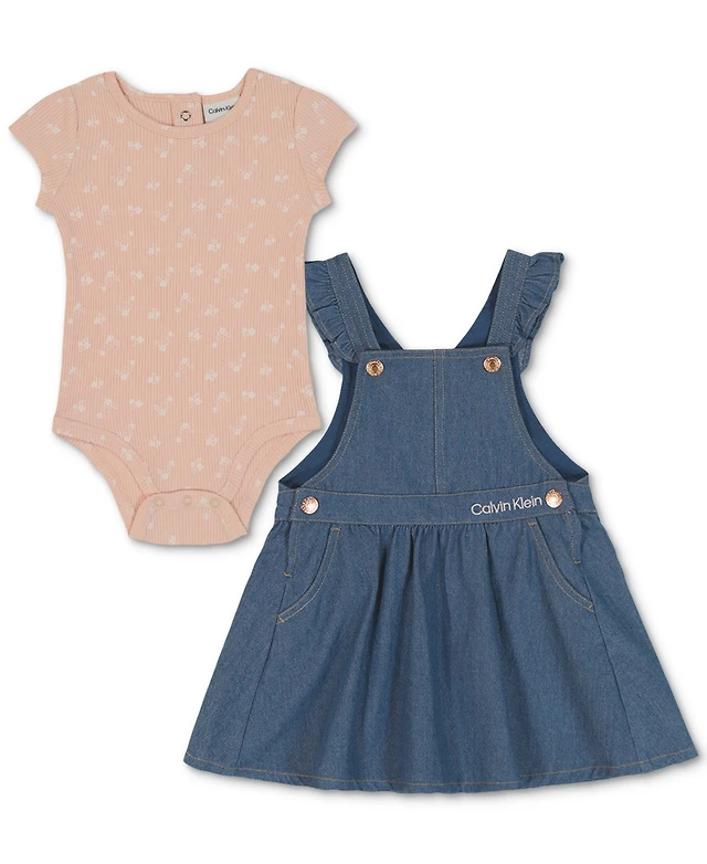 Calvin Klein Baby Girls 2-Pc. Ribbed Bodysuit & Denim Jumper Set