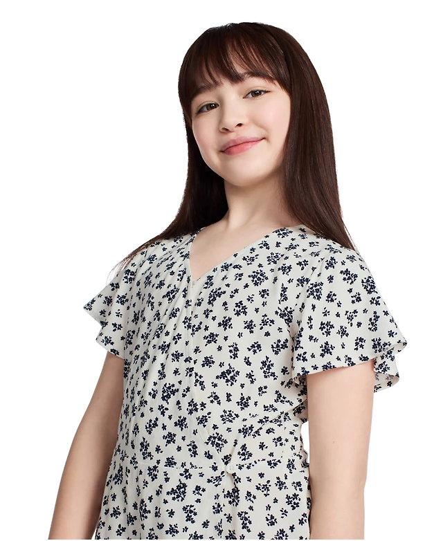Calvin Klein Big Girls Scratchy Floral Wrap Short Sleeve Dress