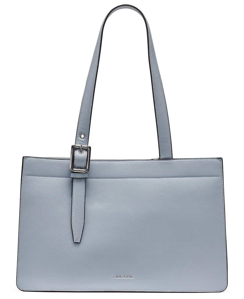 Take on the day with this tote by Calvin Klein. Featuring a structured silhouette, it opens up to a functional interior with plenty of compartments to keep you organized.