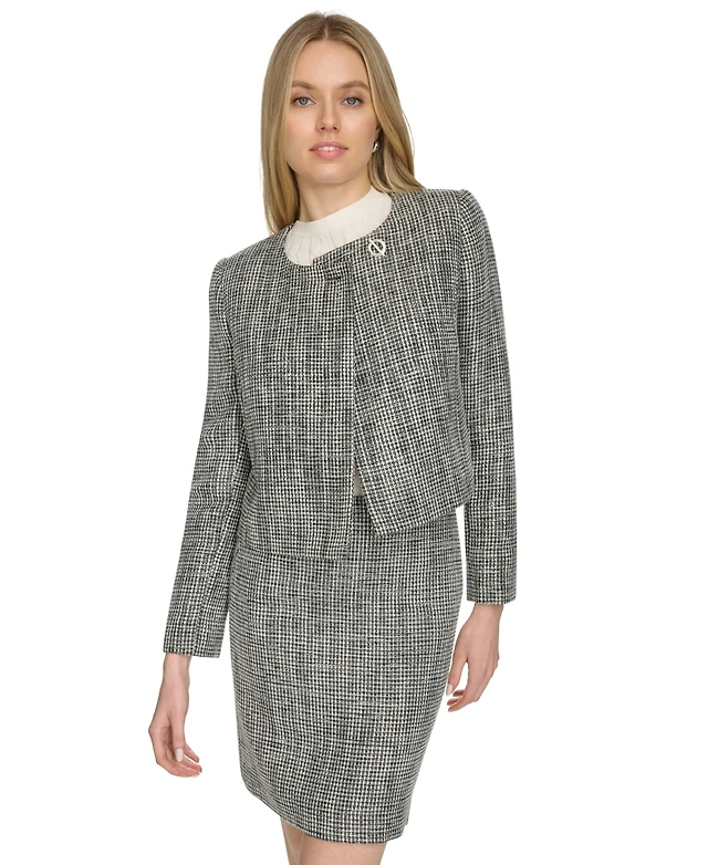 Calvin Klein Petite Collarless Long-Sleeve Cropped Jacket
