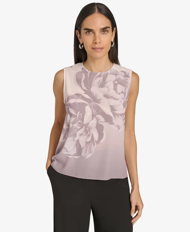 Calvin Klein Petite Floral-Print Sleeveless Top