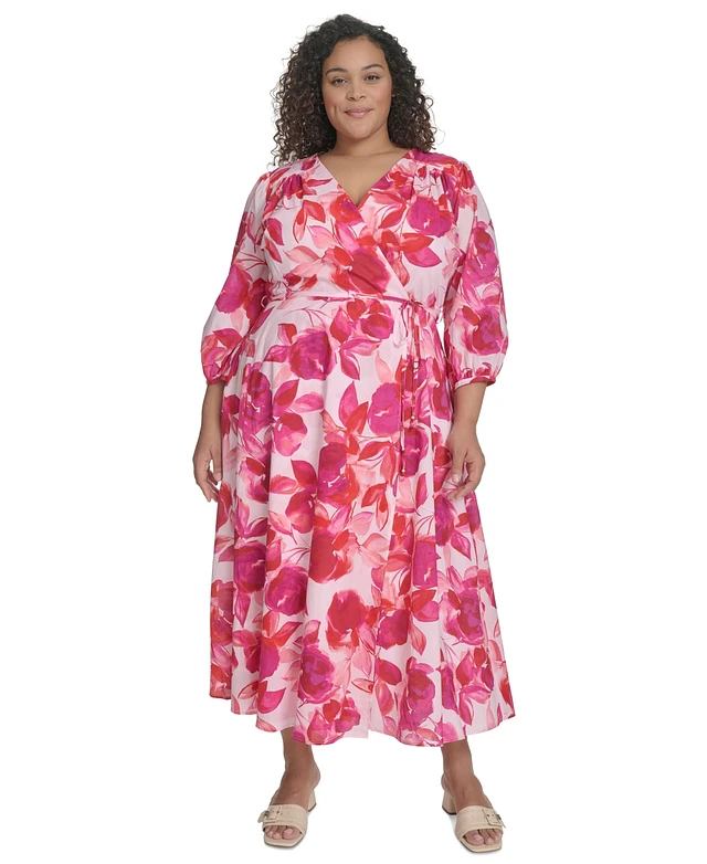 Calvin Klein Plus Cotton Floral-Print Midi Dress