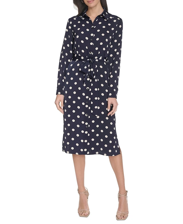 Calvin Klein Women's Dot-Print Long-Sleeve Shirtdress