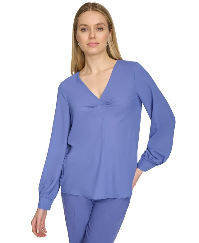 Calvin Klein Women's Long Sleeve V-Neck Blouse