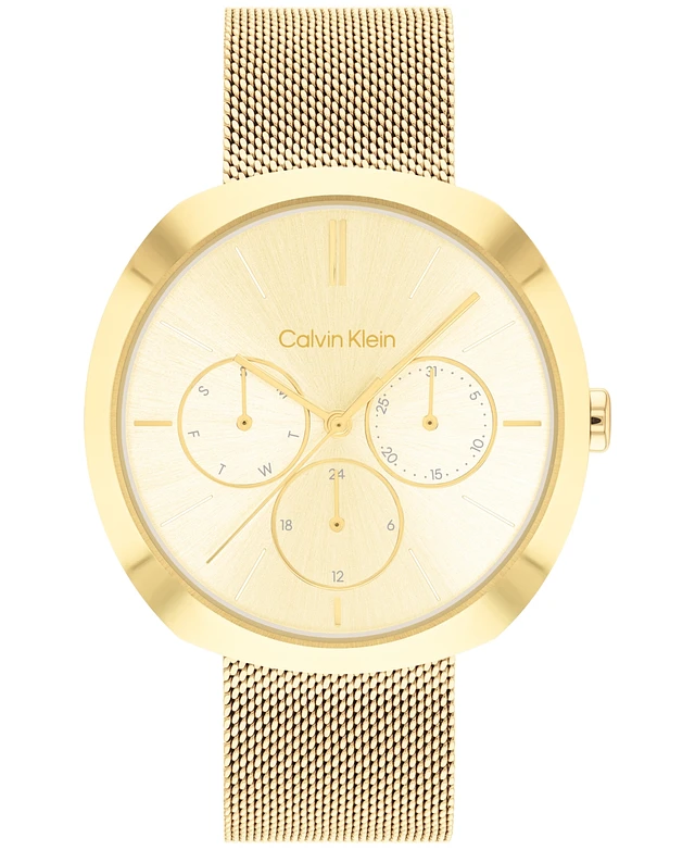Calvin Klein Women's Multifunction Gold-Tone Stainless Steel Mesh Bracelet Watch 38mm