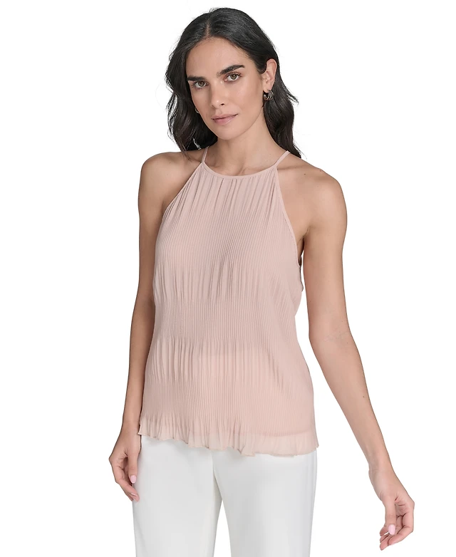 Calvin Klein Women's Pleated Chiffon Halter-Neck Top