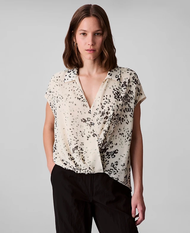 Calvin Klein Women's Printed Chiffon Faux-Wrap Cap-Sleeve Top