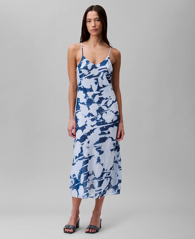 Calvin Klein Women's Printed Chiffon Slip Dress