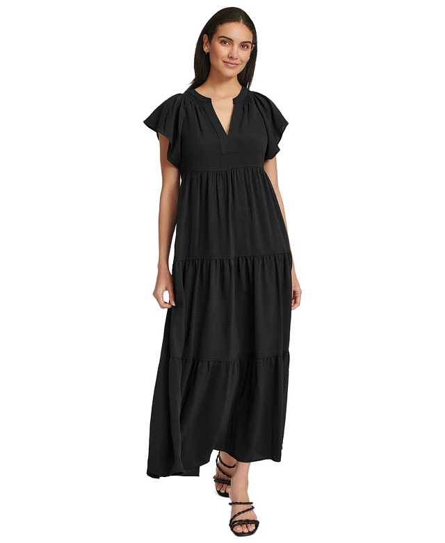 Calvin Klein Women's Split-Neck Tiered Maxi Dress