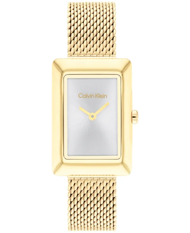 Calvin Klein Women's Two Hand Gold-Tone Stainless Steel Mesh Bracelet Watch 22.5mm