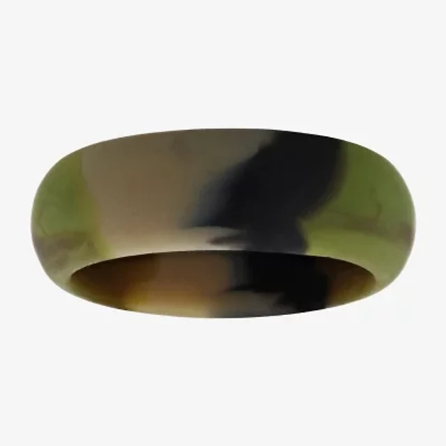 Mens 8mm Comfort Fit Stainless Steel Green Camouflage Wedding Band