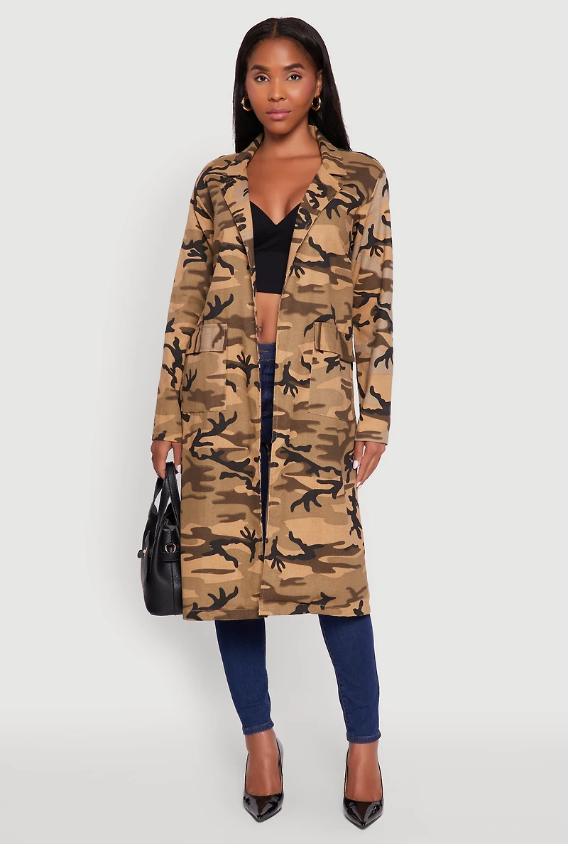 Camouflage Open Front Trench Coat