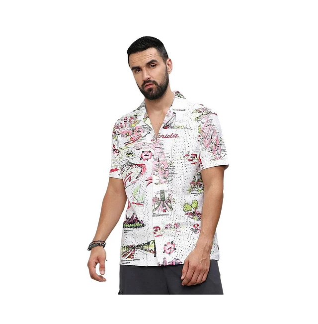 Campus Sutra Men's Chalk White:Blush Pink Maps Shirt
