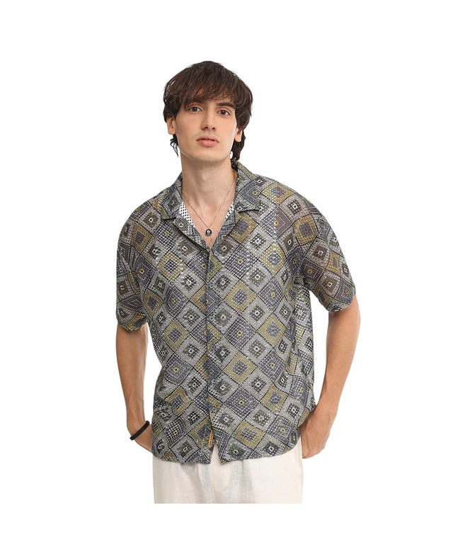 Campus Sutra Men's Dice Mesh Oversized Shirt