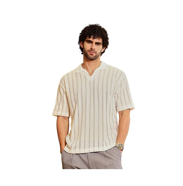 Campus Sutra Men's Off-White Duo-Striped Relaxed Polo T-Shirt