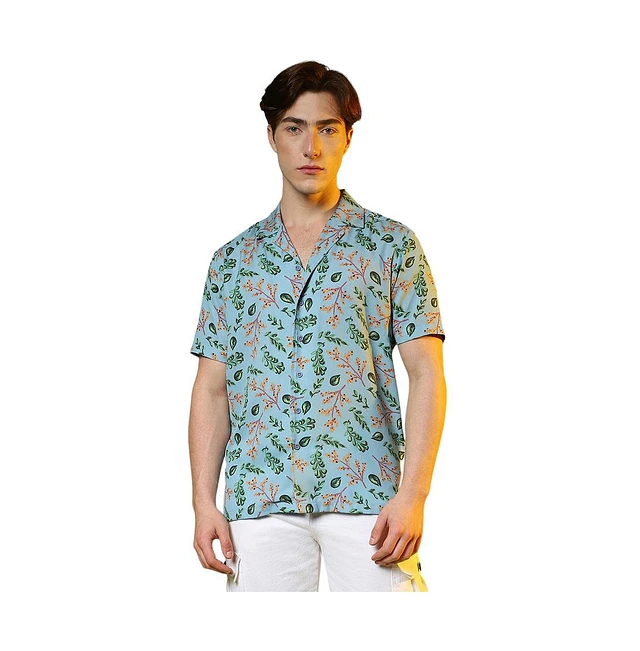 Campus Sutra Men's Sky Blue Foliage Shirt