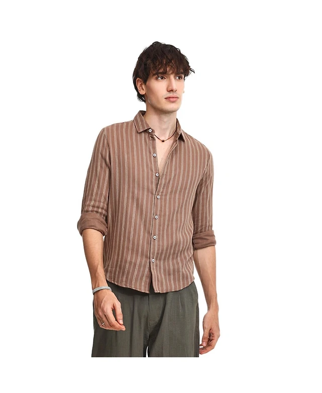 Campus Sutra Men's Tan Brown Halo Striped Shirt