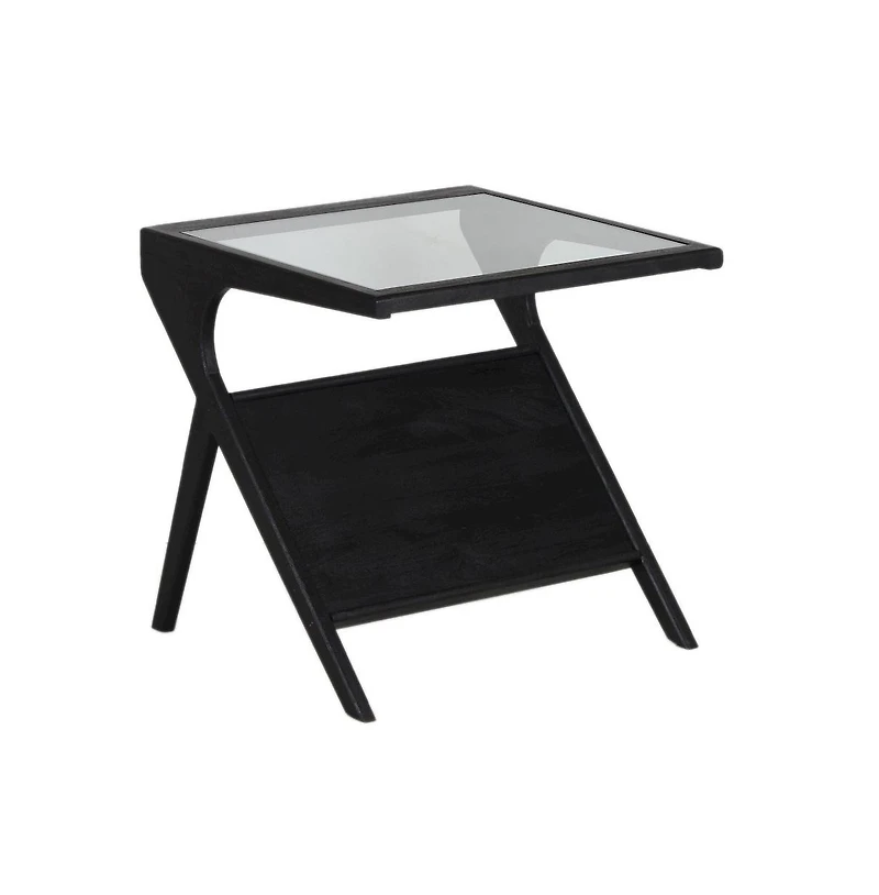 The Canberra Collection's architectural design and sleek contemporary aesthetic pairs form with function. Crafted from bold, black sandblasted mango, each piece exudes sophistication with glass tops creating a perfect place to display your favorite magazines.