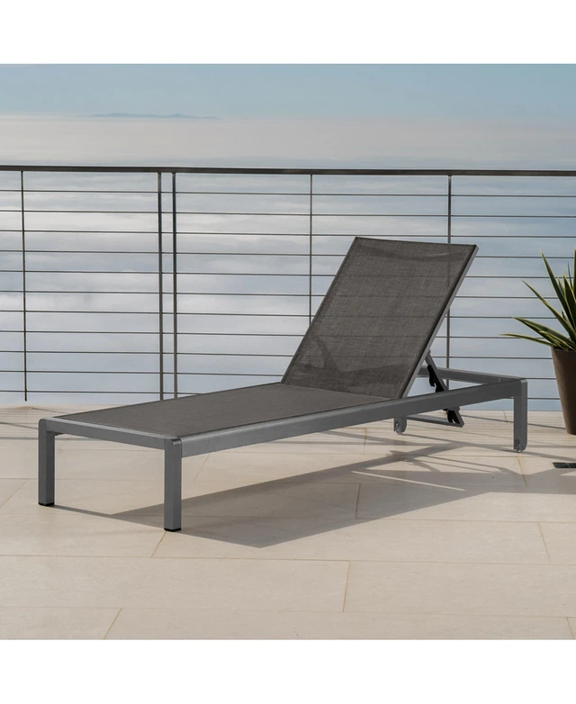 LeisureMod Grey Aluminum Outdoor Patio Chaise Lounge Chair