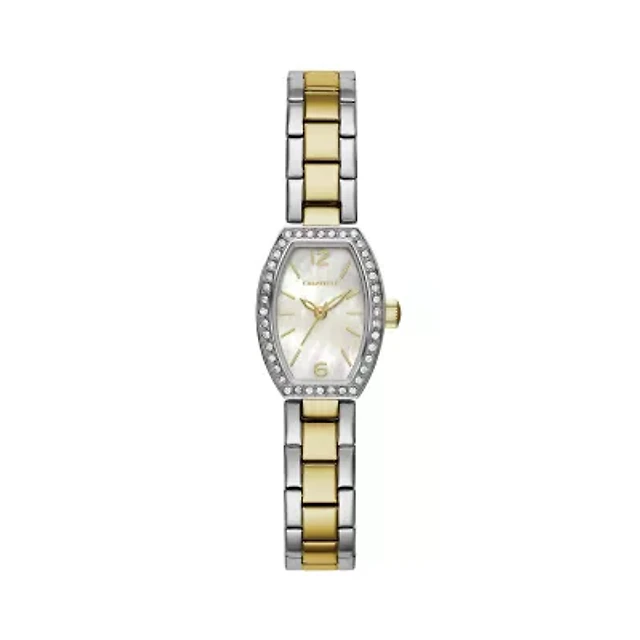 Caravelle Designed By Bulova Womens Crystal Accent Two Tone Stainless Steel Bracelet Watch 45l168
