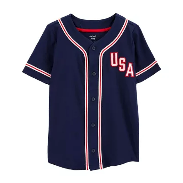Carter's Americana Little & Big Kid Boys Round Neck Short Sleeve Fitted Regular Fit Button-Down Shirt