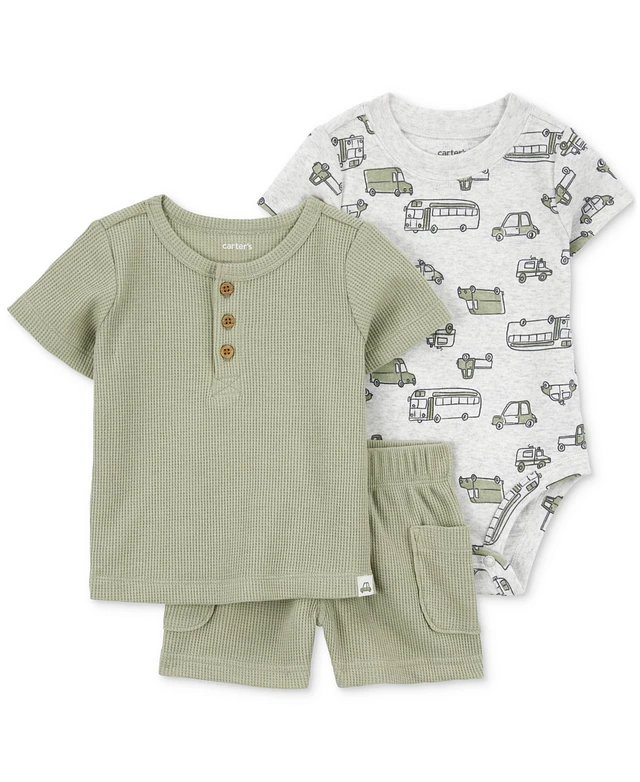 Carter's Baby Boys 3-Pc. Printed Bodysuit, Thermal Henley T-Shirt & Shorts Set