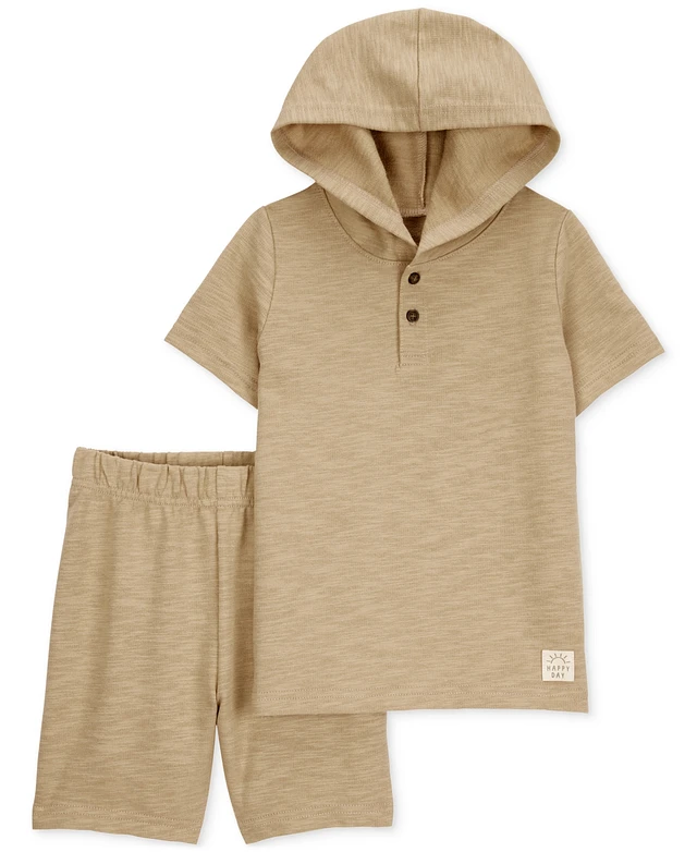 Carter's Baby Boys Cotton Hooded Henley & Shorts, 2 Piece Set