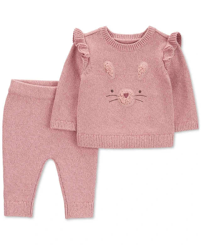 Carter's Baby Girls 2-Pc. Ruffled Bunny Sweater & Knit Pants Set