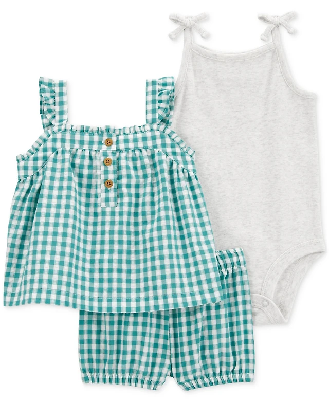 Carter's Baby Girls 3-Pc. Gingham Little Shorts, Top & Bodysuit Set