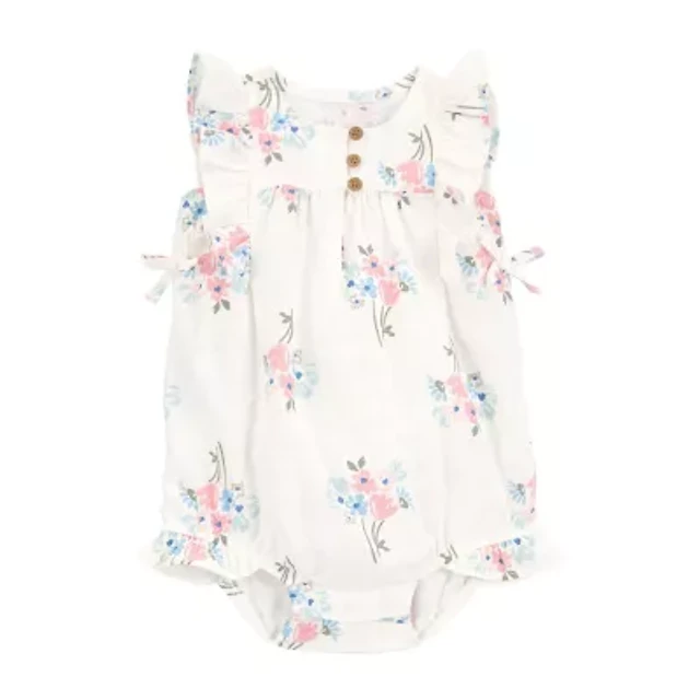 Carter's Baby Girls Floral Printed and Ruffle Detailed Snap-Up Romper
