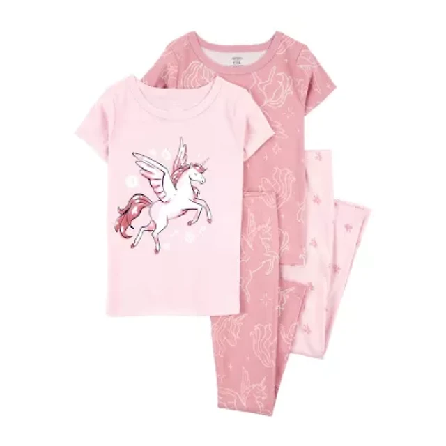 Carter's Little & Big Kid Girls Rib Round Neck Short Sleeve 4-pc. Pajama Sets