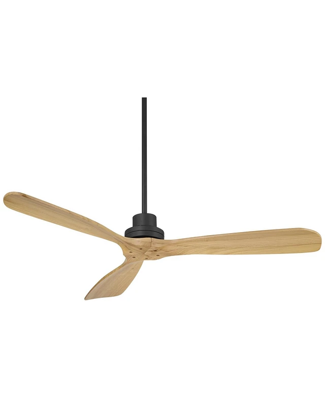 Casa Vieja 52" Delta Modern Country Indoor Outdoor Ceiling Fan 3 Blade Remote Control Matte Black Finish Wood Blades Bedroom Patio Living Room Kitchen