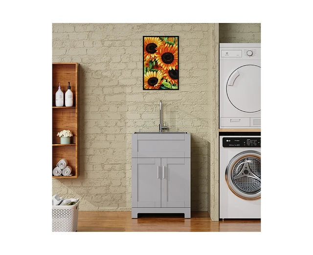 Casainc 24" Bathroom Sink Vanity Laundry Utility Gray Cabinet w/ Stainless Steel Sink Combo