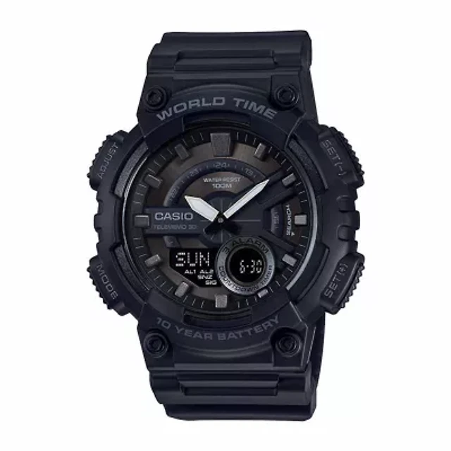 Casio World Time Mens Multi-Function Black Strap Watch Aeq110w-1bos