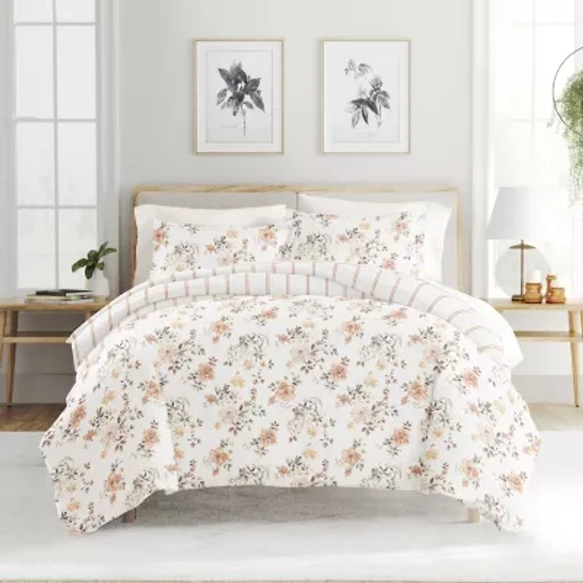 Casual Comfort Botany Floral Patterned Reversible Duvet Cover Set