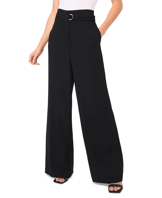 CeCe Women's Belted High Rise Wide-Leg Trousers