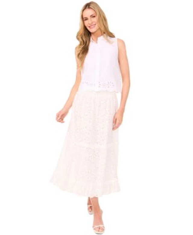 Cece Womens Cotton Eyelet Sleeveless Blouse Tiered Circle Midi Skirt