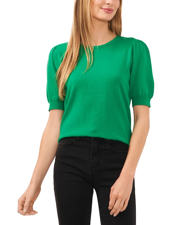CeCe Women's Puff Sleeve Crewneck Blouse