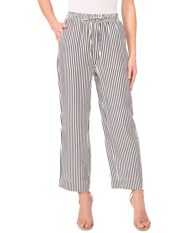 CeCe Women's Elastic-Waist Pull-On Striped Pants
