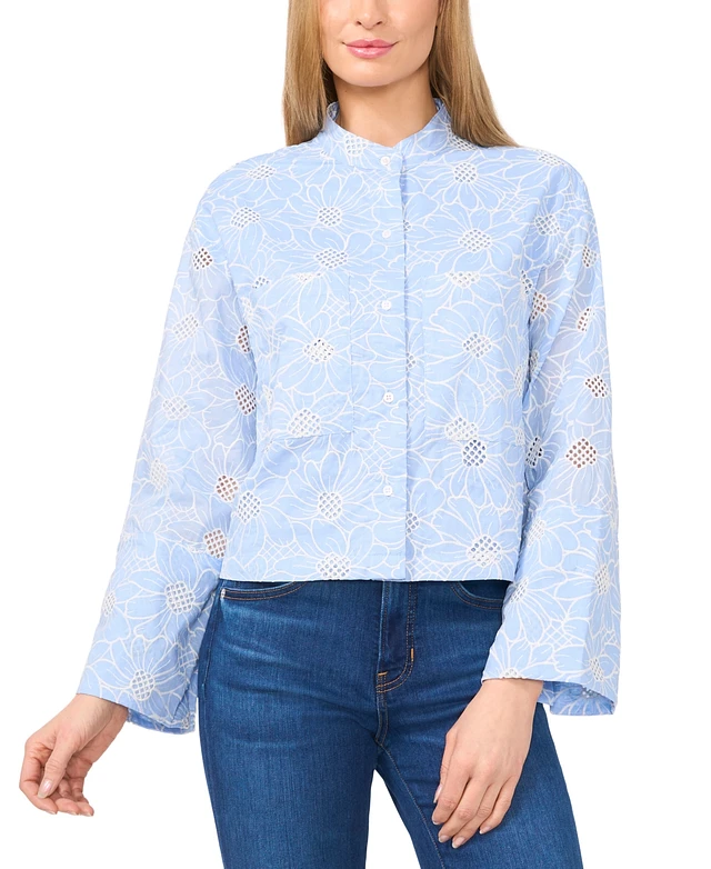 CeCe Women's Floral-Embroidered Wide-Sleeve Shirt